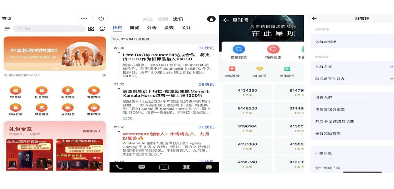 • 优势:DE公链将社交互动与支付功能相结合,旨在增强用户体验并拓展平台的应用场景。这种多元化的生态系统有助于吸引更多用户和商家,提升平台的黏性。